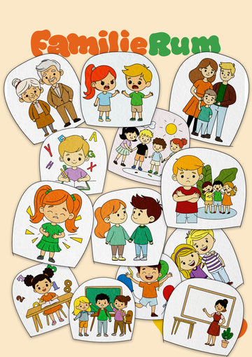 Familie Rum er et visuelt og sanseligt samtaleunivers, der hjælper familier med at tale sammen om tanker, følelser og oplevelser på en tryg, enkel og hverdagsnær måde.